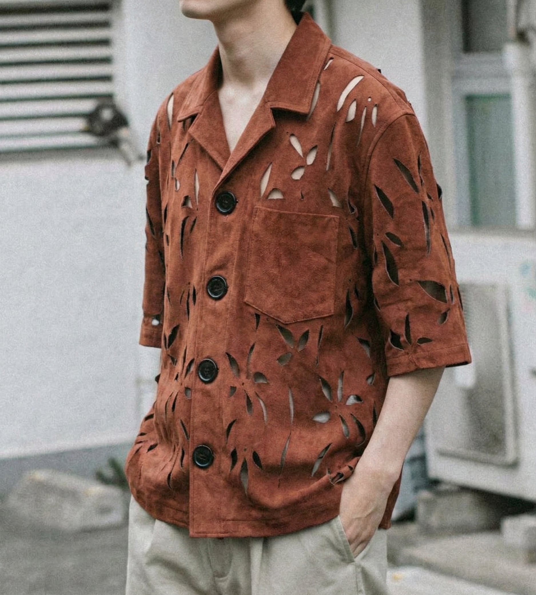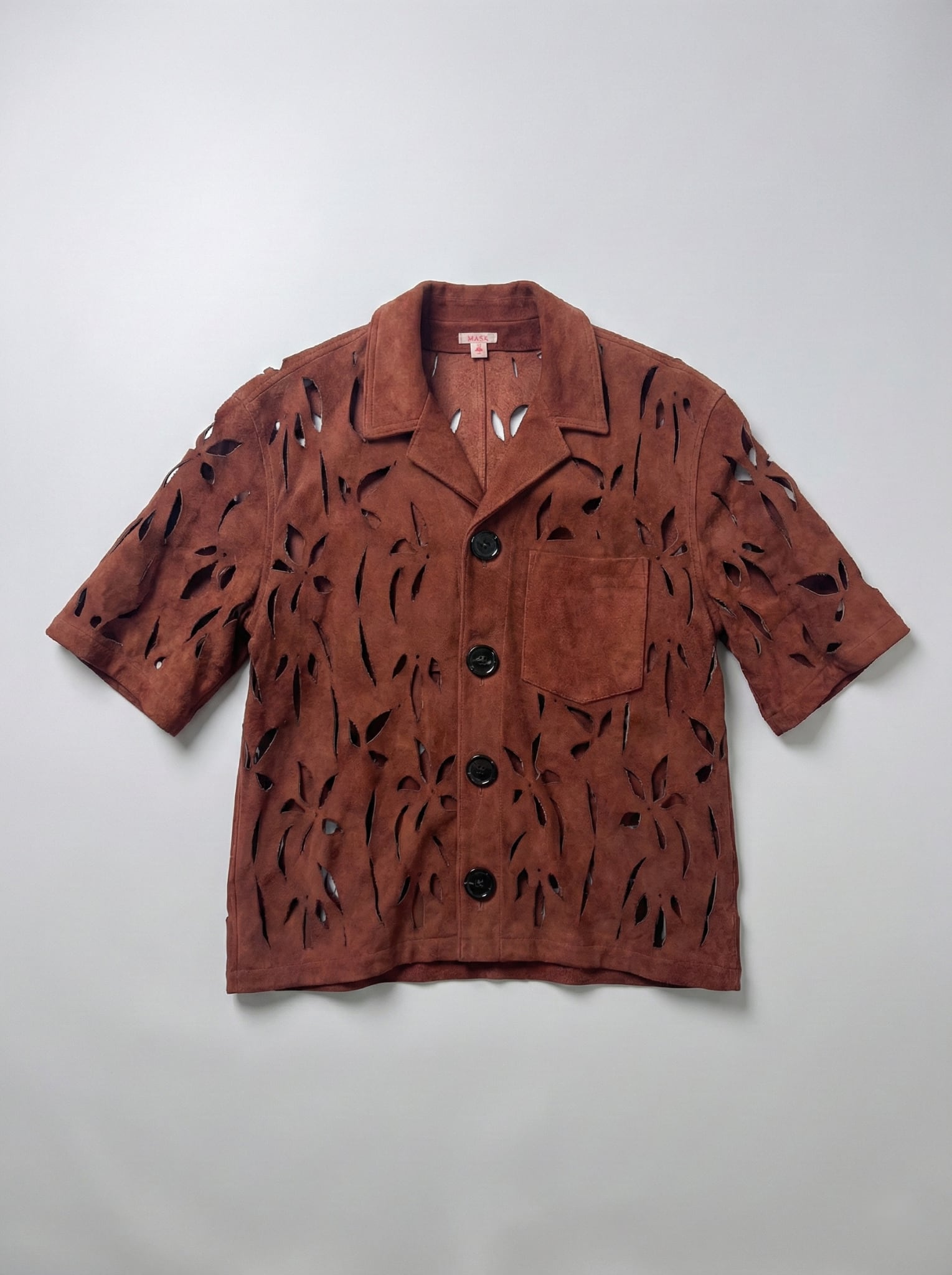 MASUらしい遊び心が詰まった、フラワーカットのレザーシャツ。